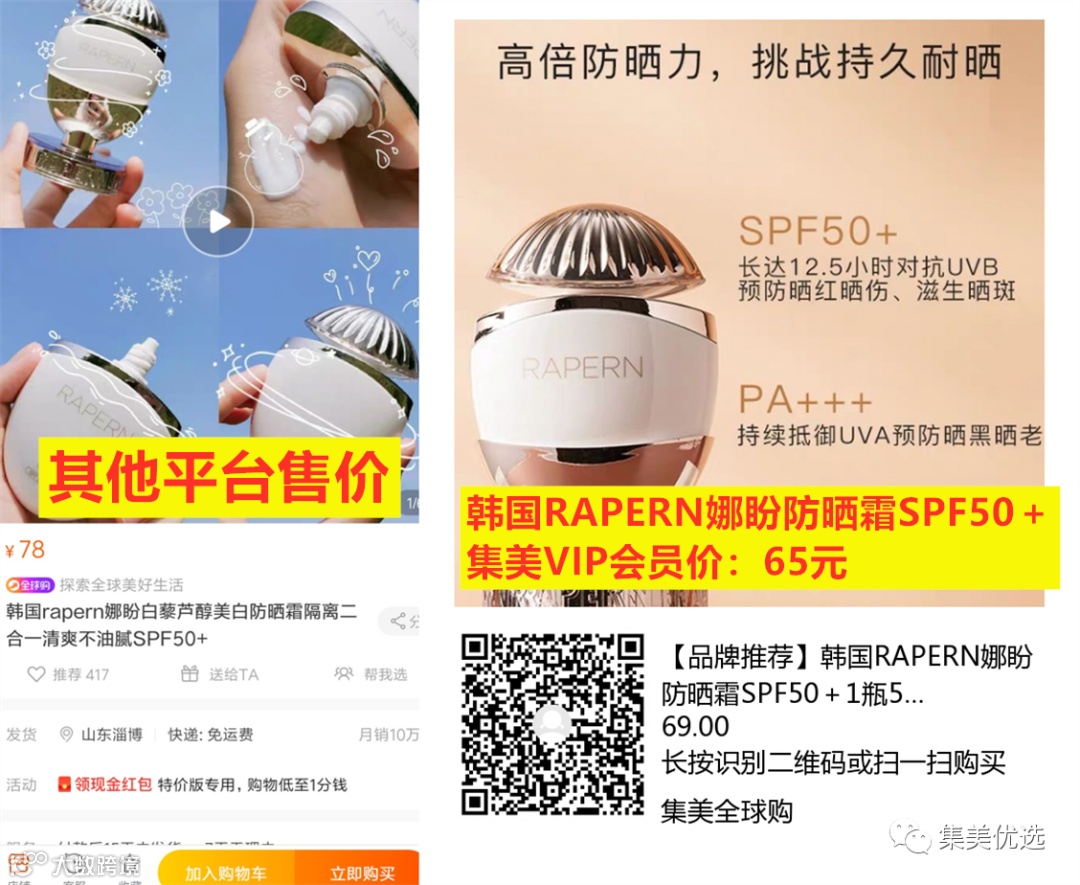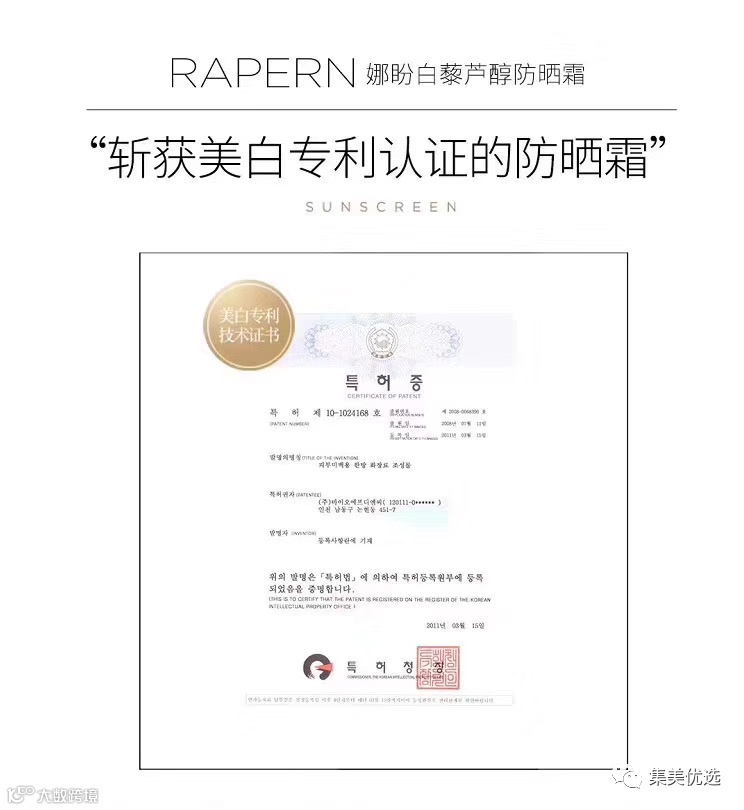 【品牌推荐】 韩国RAPERN娜盼防晒霜SPF50+ 团购价:69元 VIP /黑卡M1会员 福利补贴价:65元