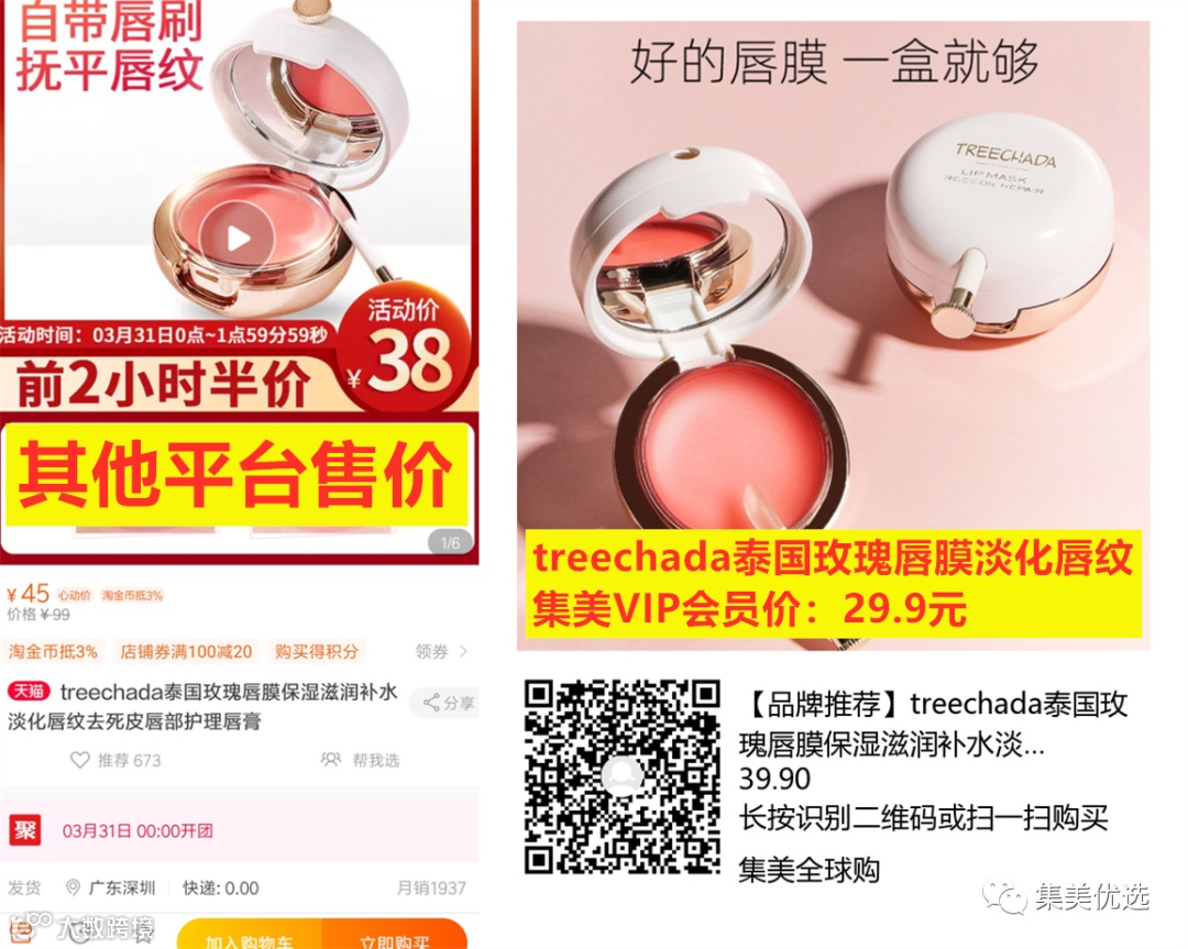 【品牌推荐】 treechada泰国玫瑰唇膜(保湿滋润补水淡化唇纹去死皮唇部护理唇膏)团购价:39.9元 VIP /黑卡M1会员 福利补贴价:29.9元