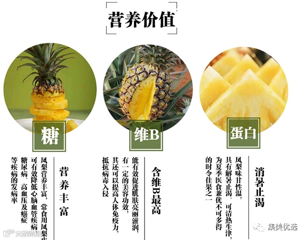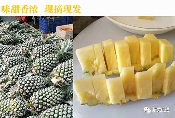 甜度吊打其它凤梨品种,果均甜度17°+,都快赶上荔枝了,却留有凤梨特有的淡淡果酸。鲜嫩多汁的果肉,8:2黄金甜酸比,简直了!