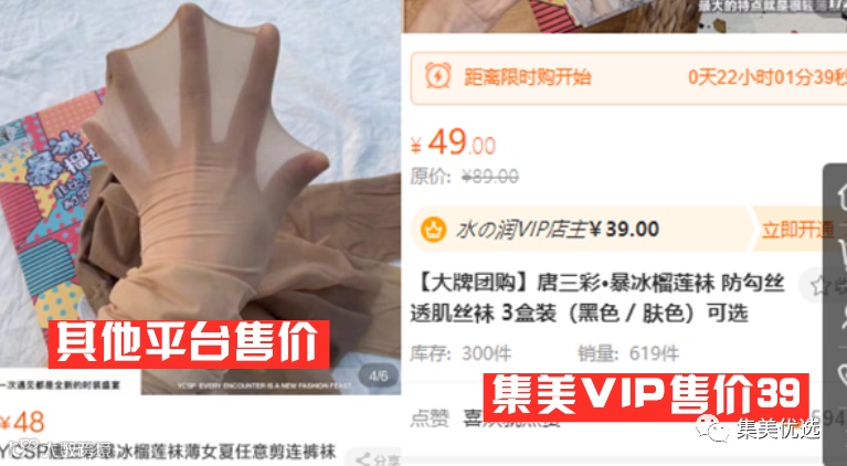 【大牌团购】唐三彩·暴冰榴莲袜 防勾丝透肌丝袜 3双装 原价:89元 VIP /黑卡M1会员 福利补贴价:39元