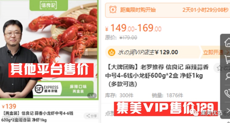 【大牌团购】老罗推荐 信良记 麻辣蒜香中号4-6钱小龙虾3盒(麻辣味) 原价:219元 VIP /黑卡M1会员 福利补贴价:159元 这次的小龙虾