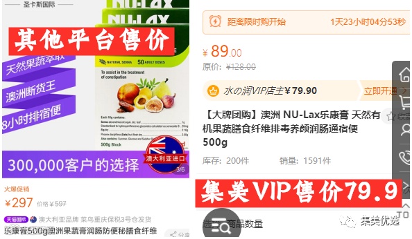 【大牌团购】澳洲 NU-Lax乐康膏 天然有机果蔬膳食纤维排毒养颜润肠通宿便 500g 原价:128元 VIP /黑卡M1会员 福利补贴价:79.9元
