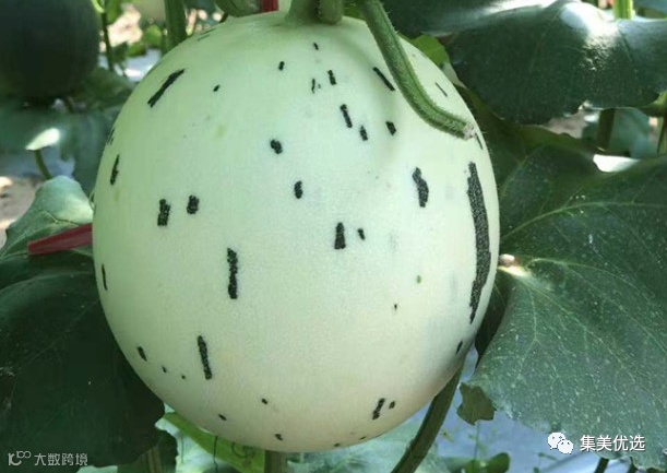 因为在浅色的果皮上有不规则的深色斑点,就像皎洁的月亮上布满神秘的露滴,酷似流星追月,得名“月露流星蜜瓜”。