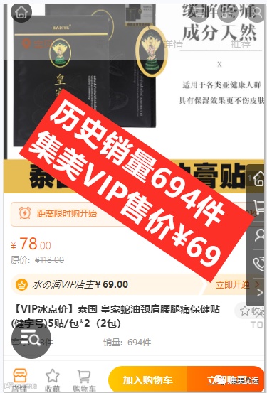 泰国 皇家蛇油颈肩腰腿痛保健贴(健字号)5贴/包*2