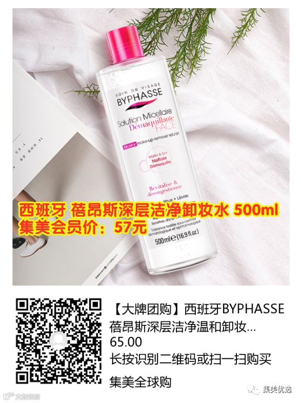 【大牌团购】西班牙 BYPHASSE 蓓昂斯深层洁净温和卸妆水 500ml 团购价:65元 VIP /黑卡M1会员 福利补贴价:57元 来自西班牙的BYPHASS蓓昂斯卸妆水,