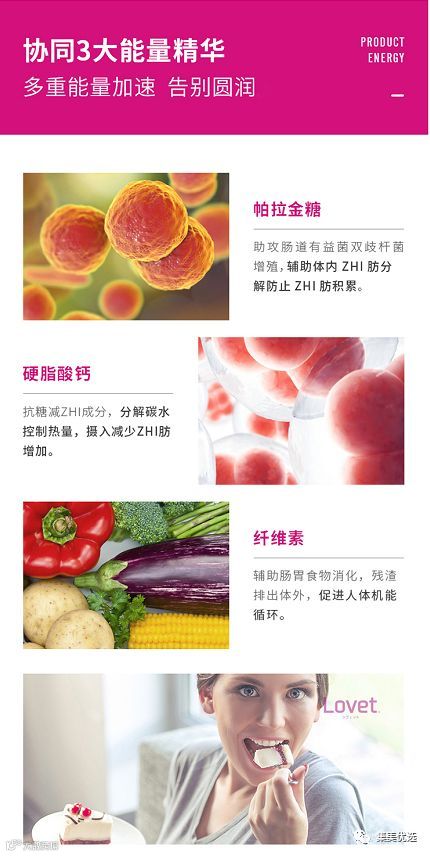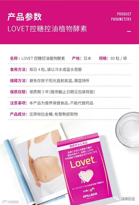 “Lovet”控糖减脂纤体丸,名称由“Love”和“EAT”组成,命名中即可以看出完全是一款为广大吃货小仙女们量身定制的产品。