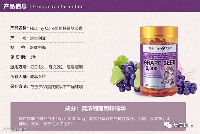 【大牌团购】澳洲Healthy Care Grape seed 葡萄籽胶囊 300粒 团购价:159元 VIP /黑卡M1会员 福利补贴价:149元 20岁以后不想老的太快,一定要老老实实的抗氧化了