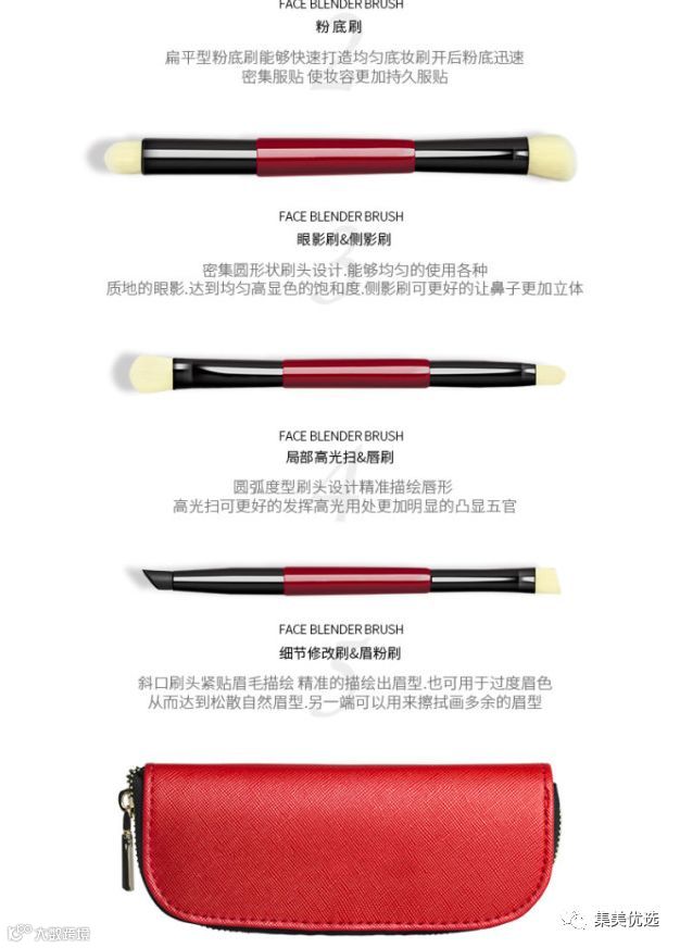 4.局部高光扫&唇刷 圆弧度型刷头设计,精准描绘唇形,高光扫可更好的发挥高光用处,更加明显的凸显五官