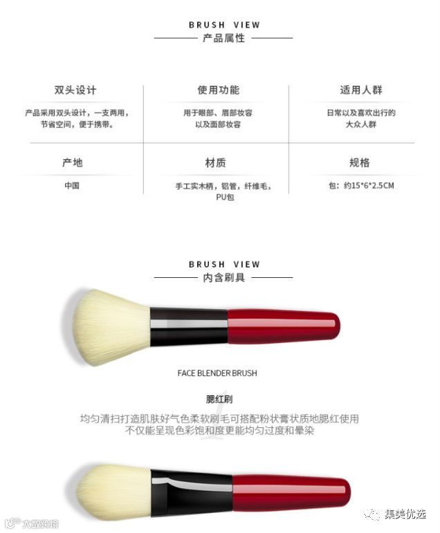 1.腮红刷 :均匀清扫打造肌肤好气色,柔软刷毛可搭配粉状、膏状质地腮红使用