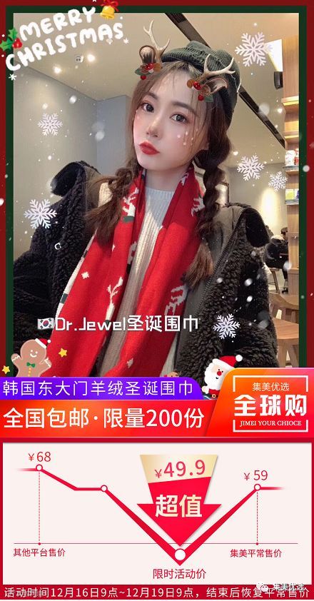 韩国Dr.Jewel羊绒圣诞围巾节日一定不容错过的围巾,围巾还是双面的喔 不光是圣诞节 接下来的元旦 新年都可以带这条出去暖暖的过节啦,送朋友或者自留都很暖心。