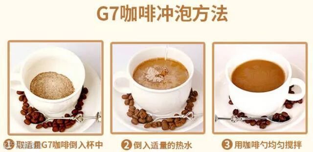 G7咖啡虽然是速溶咖啡,但是味儿香浓醇厚,不仔细品尝都尝不出来是速溶咖啡,和现煮的味道差不多。