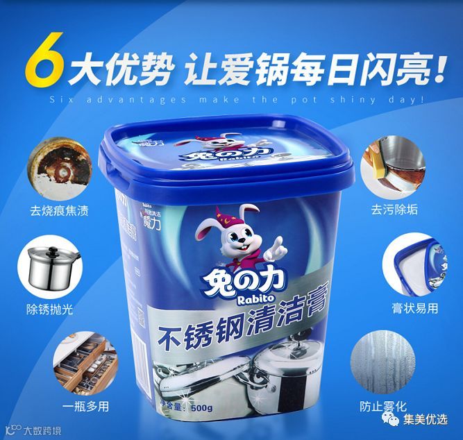 无毒无害无异味的兔之力清洁膏,强力去油污和锈迹,防雾防水珠,避免二次清洁。适用范围广泛,不伤手也不伤不锈钢,摆脱划痕,持久光亮如新,再也不用为清洁锈迹烦恼~