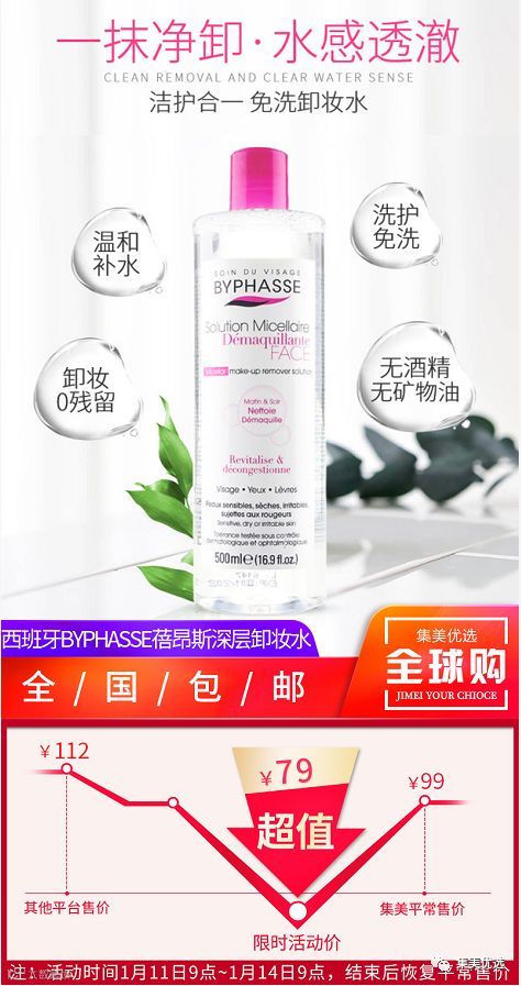 【福利团购】西班牙BYPHASSE蓓昂斯深层洁净温和卸妆水500ml