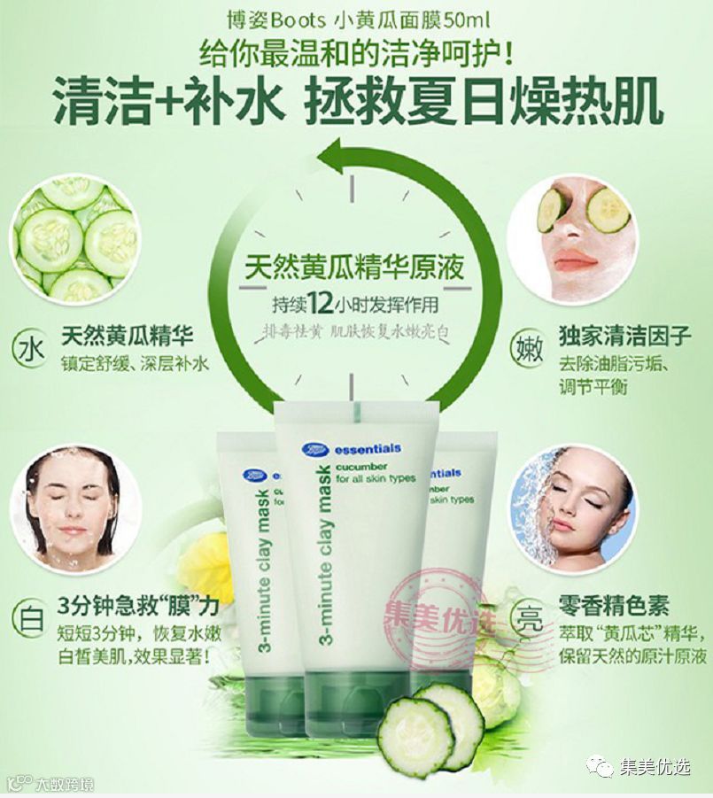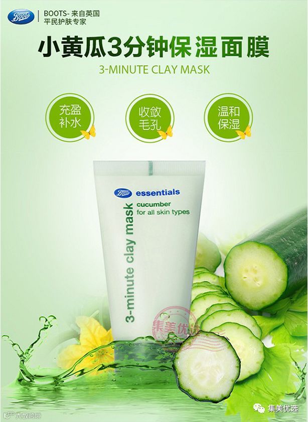 Boots人气小黄瓜3分钟面膜,号称三分钟净面,深层清洁毛孔去黑头,细致面孔,只需三分钟就可以搞定,刷牙前把面膜涂上,刷牙完毕就可以洗脸了哦,三分钟让皮肤展现光滑,恢复弹性