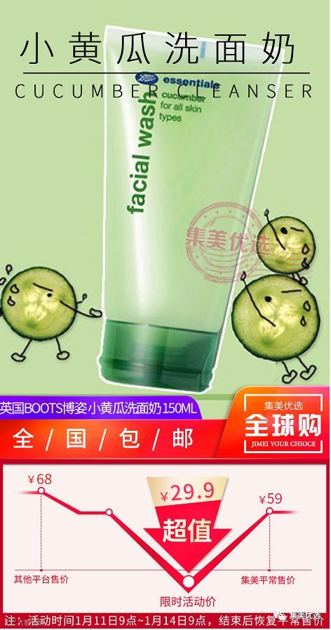 【福利团购】 英国BOOTS博姿 小黄瓜洗面奶 150ml