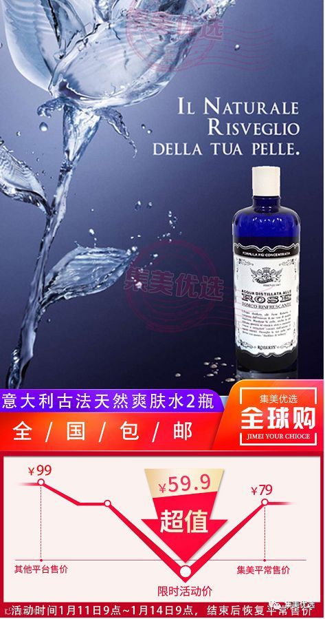 【福利团购】意大利ACQUA ALLE ROSE 古法天然玫瑰水300ml*2瓶