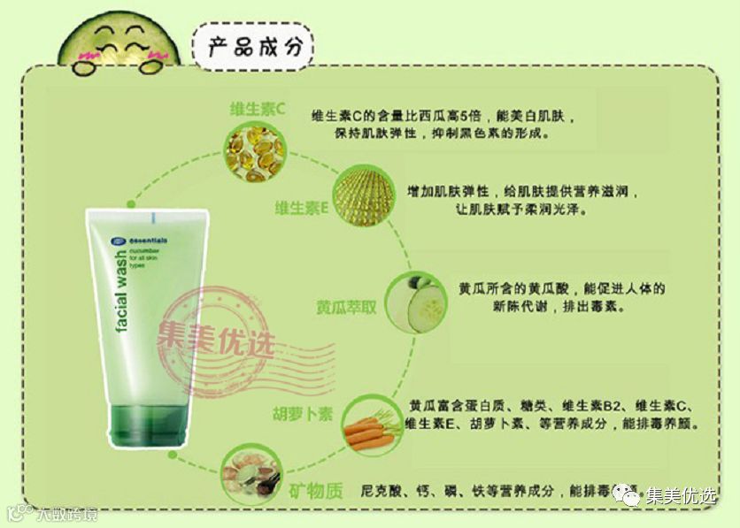 萃取“黄瓜芯”精华,保留了黄瓜最天然的原汁原液,含有大量水分,在深层清洁的同时,还能为肌肤补水保湿,洗完脸上会变得很水润~