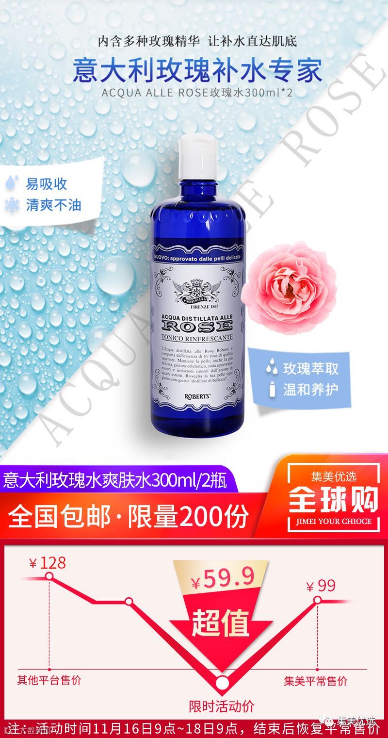 ACQUA ALLE ROSE 源自1867年的意大利佛罗伦萨,沿用纯正玫瑰精油,天然山泉水,古老配方传统制作,还添加了四种蔷薇提取物,这些提取物对皮肤具有抗氧化、防治红血丝和保湿调理作用。