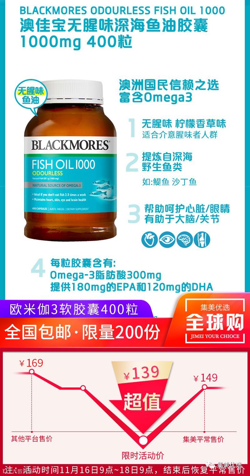 【福利团购】 澳洲Blackmores澳佳宝 无腥味深海鱼油 欧米伽3软胶囊400粒