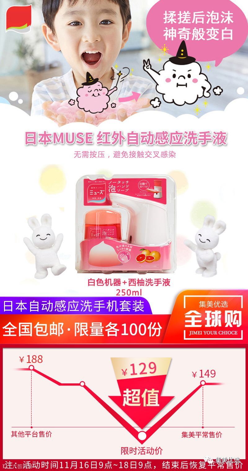 【福利团购】日本MUSE自动感应泡沫型洗手液弱酸性泡沫洗手机套装