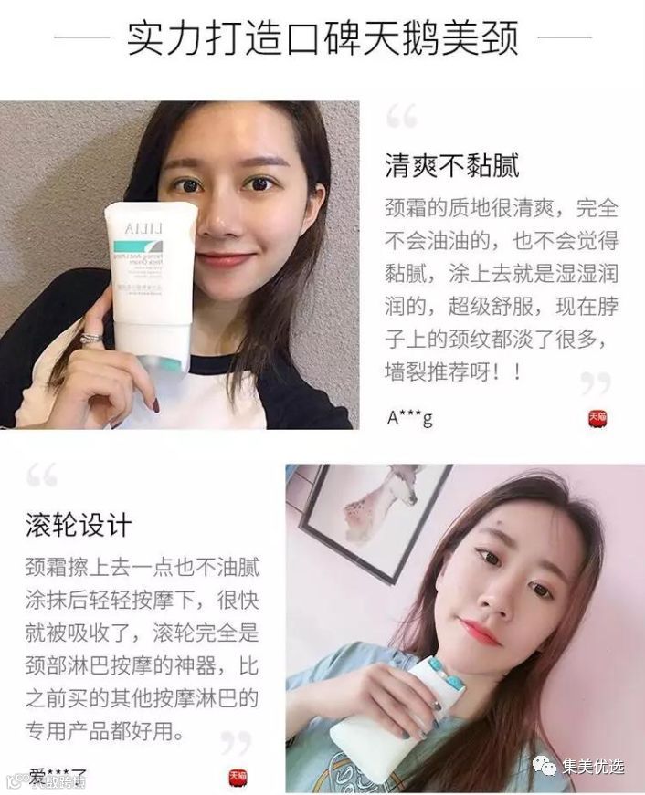 颈霜一定要用!因为颈部的皮肤比面部肌肤更加细薄,所以脖子会比脸先老!一条颈纹老三岁!颈霜一定要备起来!自带滚轮的颈霜,好用又卫生!
