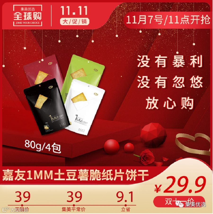 嘉友1MM土豆薯脆纸片饼干早餐代餐薄脆海苔咸味饼干 80g *4包