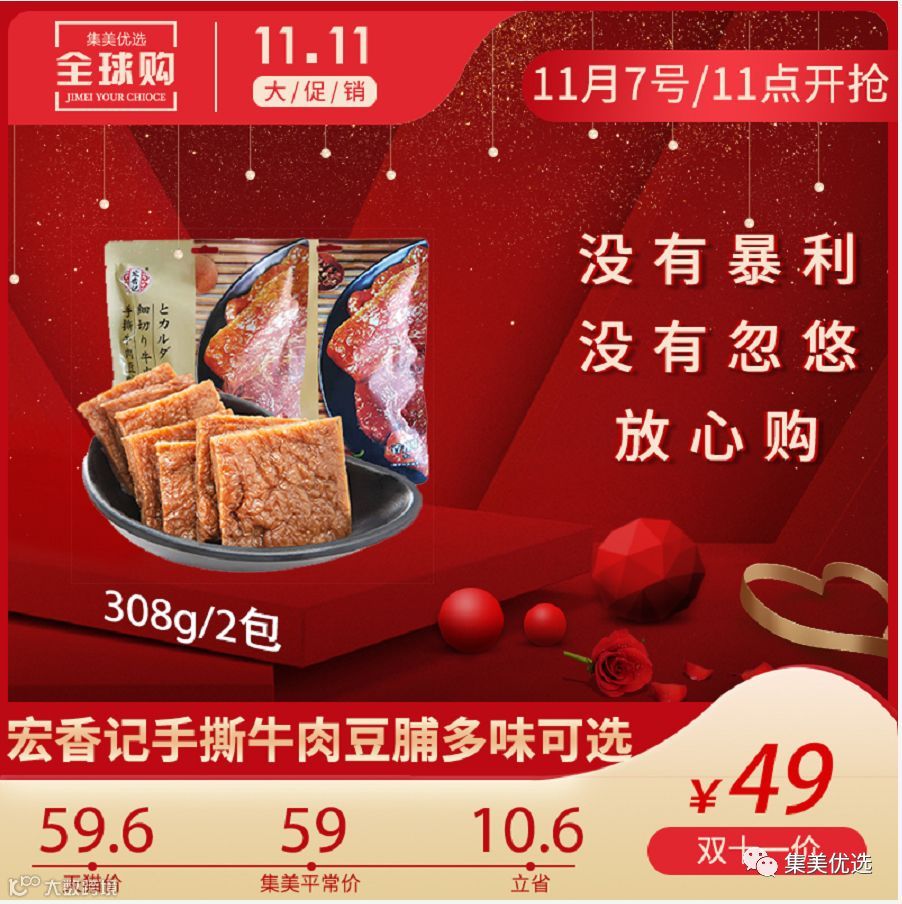 宏香记手撕牛肉豆脯308g定量装五香辣豆干休闲零食独立小包装 *2包