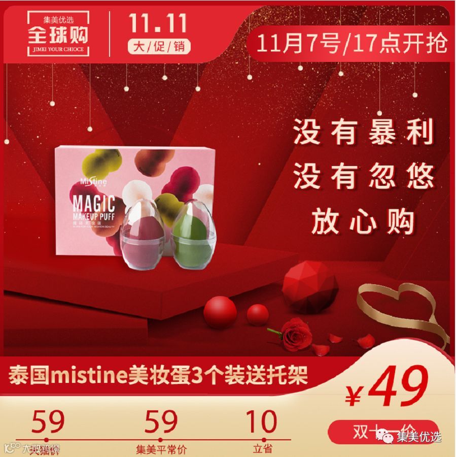 泰国mistine魔法美妆蛋葫芦水滴干湿两用气垫海绵粉扑3个装送托架