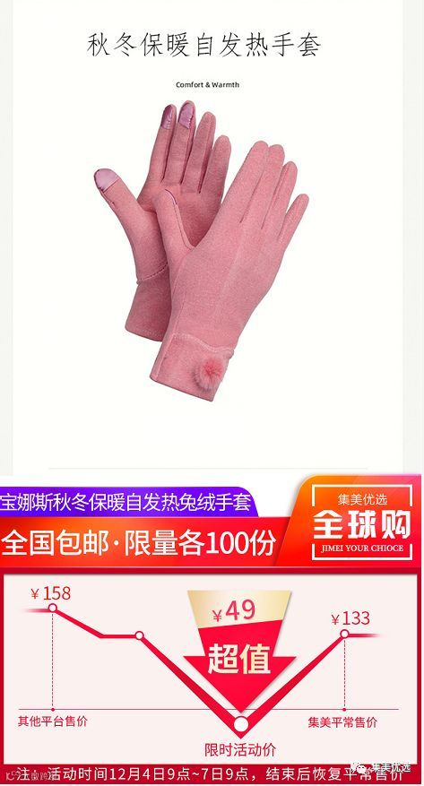 【福利团购】宝娜斯秋冬保暖自发热兔绒手套