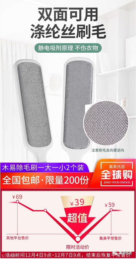 【福利团购】木易家居静电除毛刷 一大一小2个装