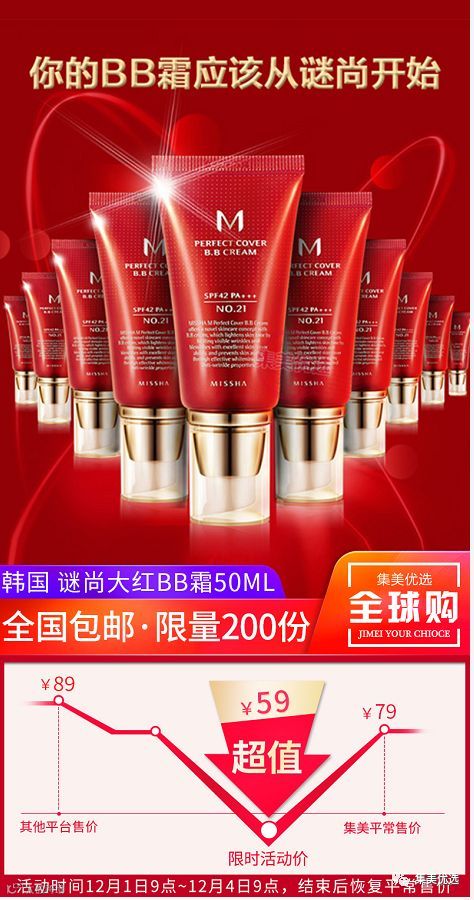 韩国MISSHA谜尚大红BB霜,传说中无所不能的“红BB”,就能让你的皮肤也如明星般匀净透白哦!多种功效齐集一身,代替防晒霜、隔离霜、遮瑕膏和粉底液,轻松演绎裸透亮白的完美肌肤!
