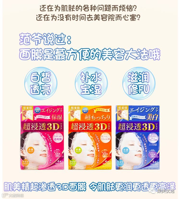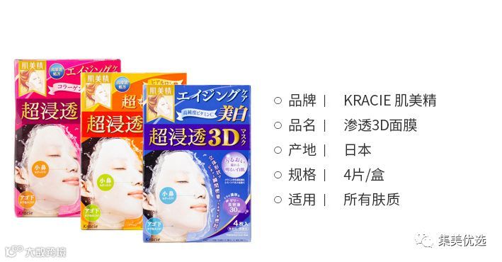 福利团购日本本土版Kracie肌美精3D超浸透胶原蛋白弹力紧致保湿面膜 4片