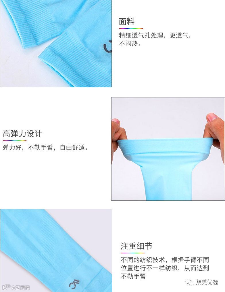 冰袖套在胳膊上冰冰凉凉的,夏日炎炎戴着正好可以防止晒胳膊,带上很透气,做工精细布料柔软,面料精密有透气,防晒、散热的特点,面料如婴儿般柔软,冰冰凉凉的,品牌好货安全放心。让你100%满意,弹性十足特别好,而且很耐脏。