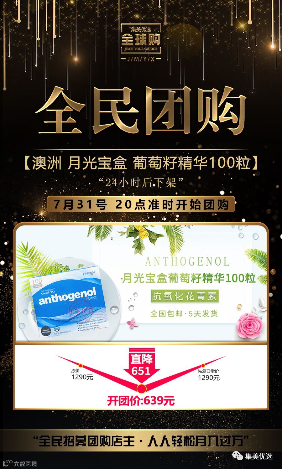 福利团购 澳洲 Anthogenol 月光宝盒 抗氧化花青素葡萄籽精华100粒