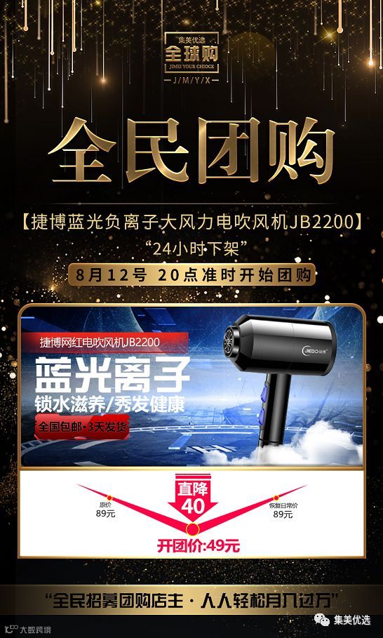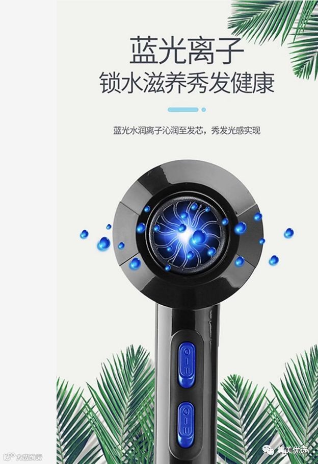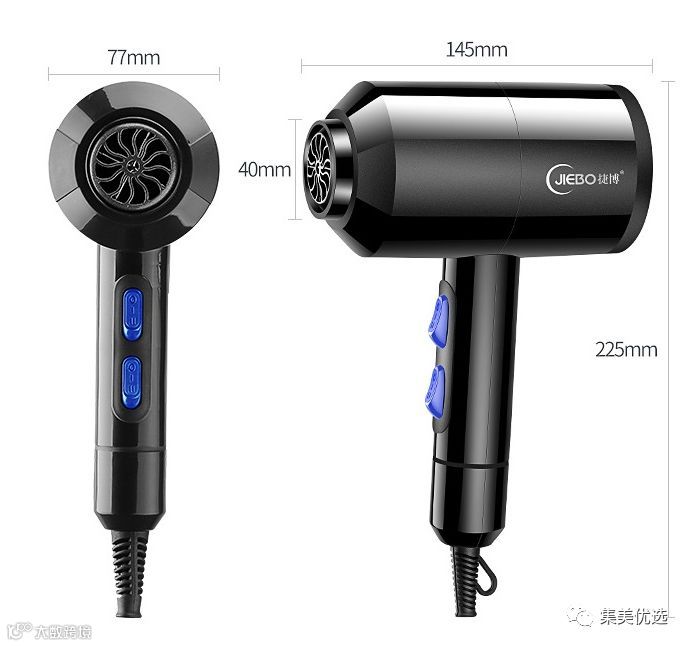 对于吹风机,普遍的看法是,用吹风机就是为了把头发吹干。事实是,只图吹干头发而随便挑选的风筒则会对头发产生伤害。因为一般的吹风机出来的风都是干风,如果使用的时间过长,很容易使得头发失去水分,造成头发的损伤,俗称热伤害。集美给大家介绍一款捷博 网红款蓝光负离子电吹风机