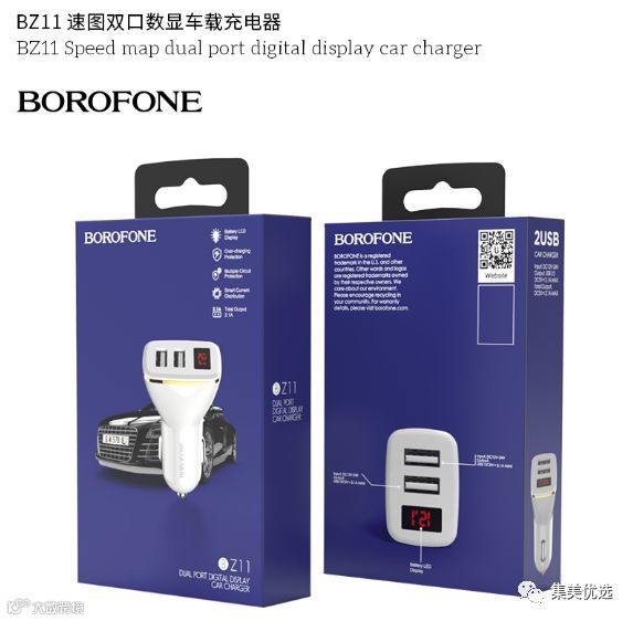 【品牌团购】菠萝风 BZ11速图双口数显车载充电器USB接口手机数据线车载充电头