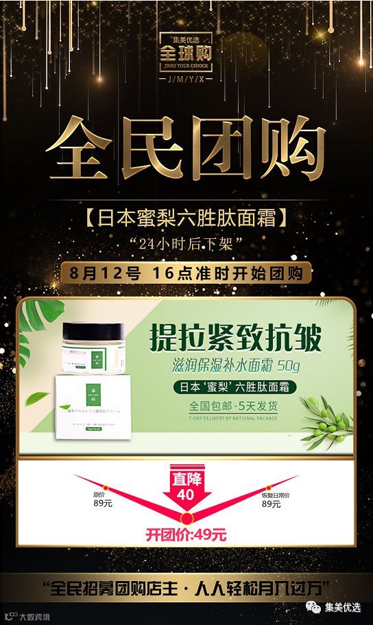 【福利团购】日本蜜梨六胜肽面霜 提拉紧致抗皱去皱纹滋润保湿补水面霜 50g