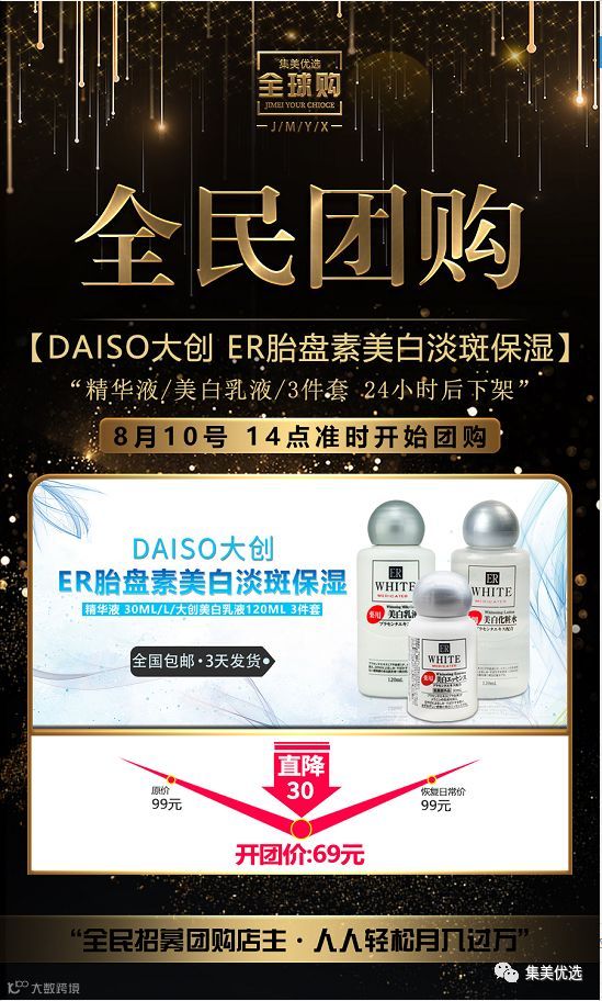 【品牌团购】DAISO大创 ER胎盘素美白淡斑保湿精华液 30ml/l/大创美白乳液120ml 3件套