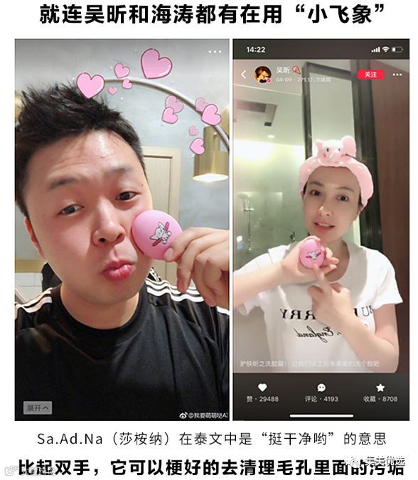 首先要强调的是不管是哪种洗面仪,都比用手洗脸要洗得干净。平价小飞象洗面仪,吴昕海涛亲力推荐哦,最亲民的明星同款啦!