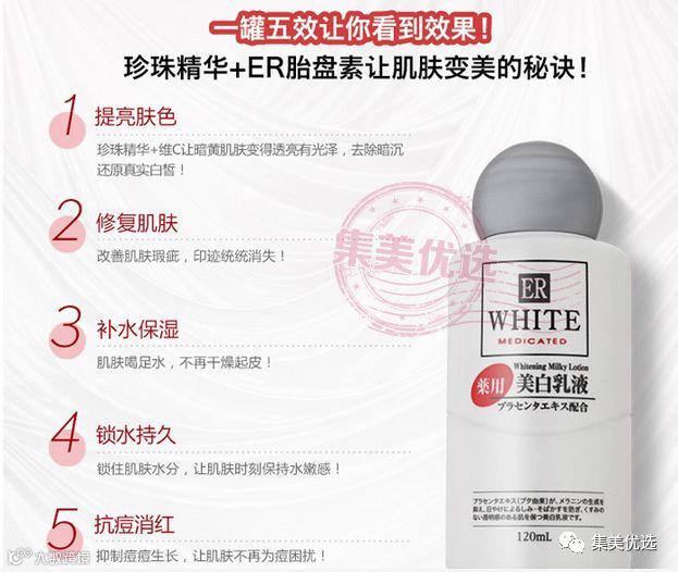 作为平价美白产品里堪称最良心的一款,大创这个美白精华液的主要成分是胎盘素、维生素C和珍珠提取液,可以帮助皮肤加快新陈代谢,促进细胞分裂,尽快代谢掉暗沉肤色达到美白功效。