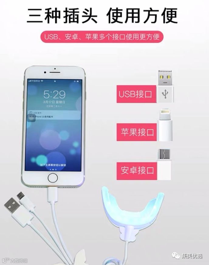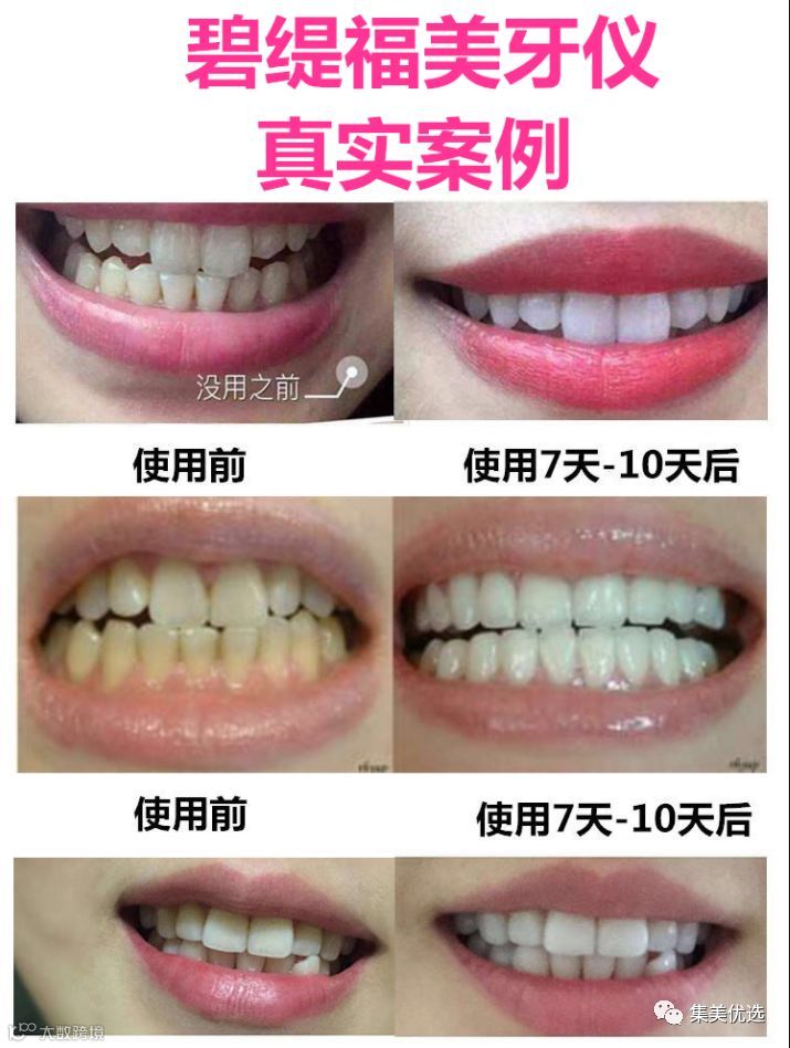 💬 碧缇福美牙仪 ️对牙齿和身体无害。经过MSDS、SGS、CE认证。凝胶成分属于食品级。️不是漂白牙齿。原理是通过低温冷光照射凝胶反映到牙小管产生置换出牙小管里面深处附着的色素,还原牙齿本色的过程。️操作简单,真实有效。在家使用半小时,可随身携带!️品牌口碑优秀。是美牙产品中唯一一款与CCTV央视网合作的品牌
