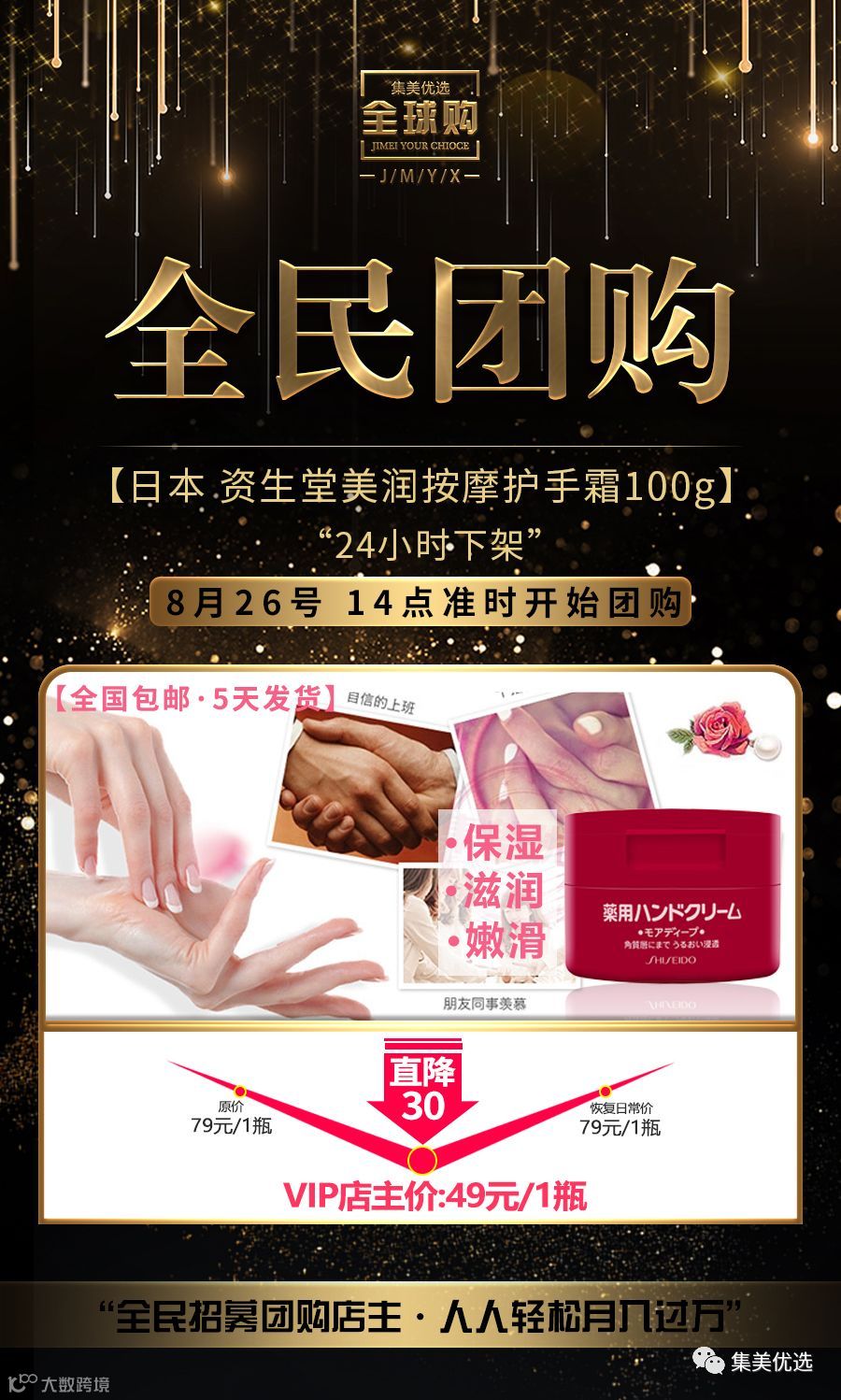 品牌团购 日本 SHISEIDO 资生堂美润按摩护手霜 渗透滋养型 100g