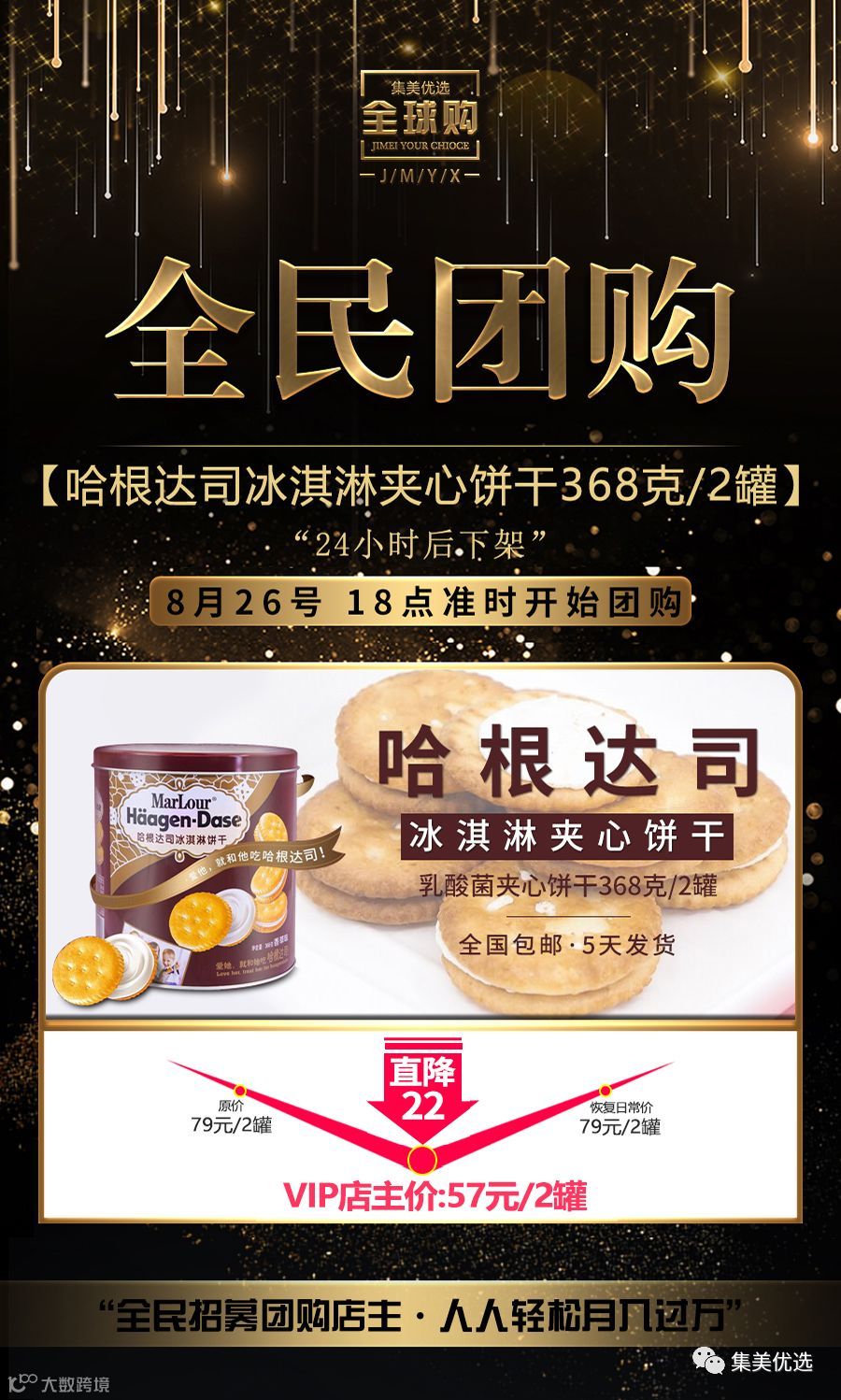 福利团购 MarLour?【哈根达司冰淇淋夹心饼干】368克 乳酸菌夹心饼干 2罐