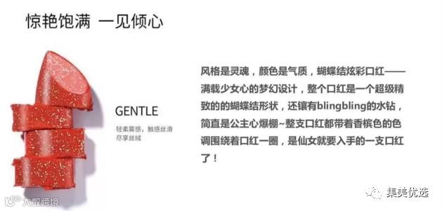 蝴蝶结璀璨耀眼、缎面丝绒感滑顺贴合唇部。
