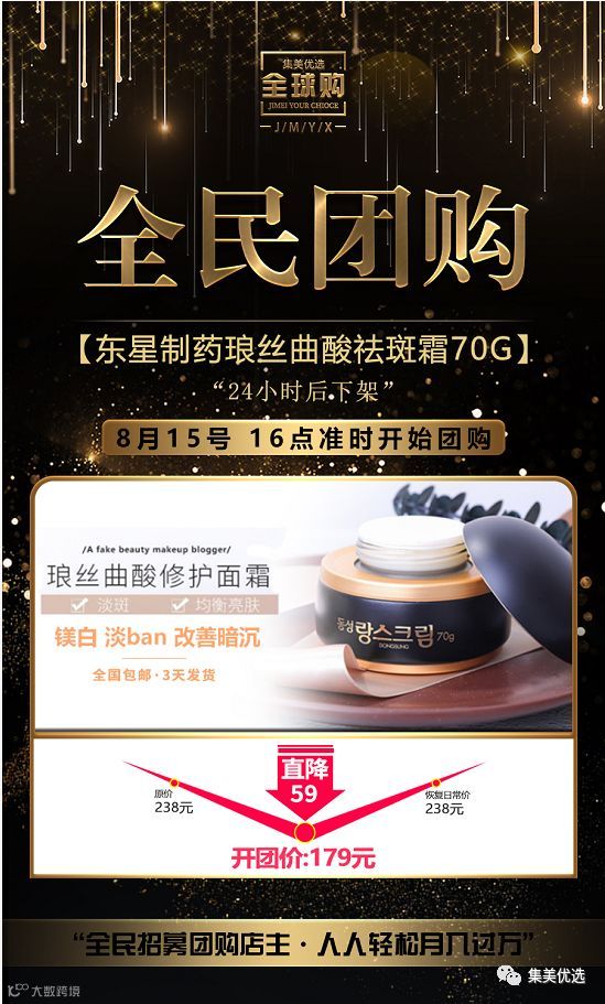 【品牌团购】东星制药琅丝曲酸祛斑霜70g 美白淡斑 提亮肤色 补水滋润