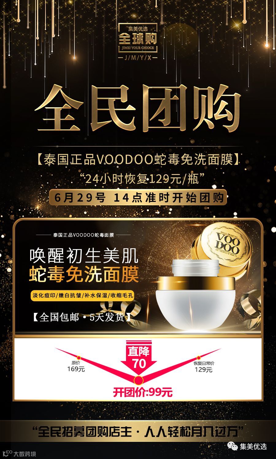 泰国正品VOODOO蛇毒面膜免洗睡眠白补水保湿祛痘印粉刺淡斑控油 限量300份!