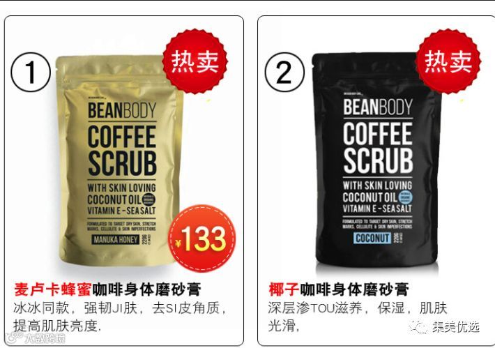 澳洲beanbody咖啡磨砂膏身体面部全身去角质去鸡皮嫩白