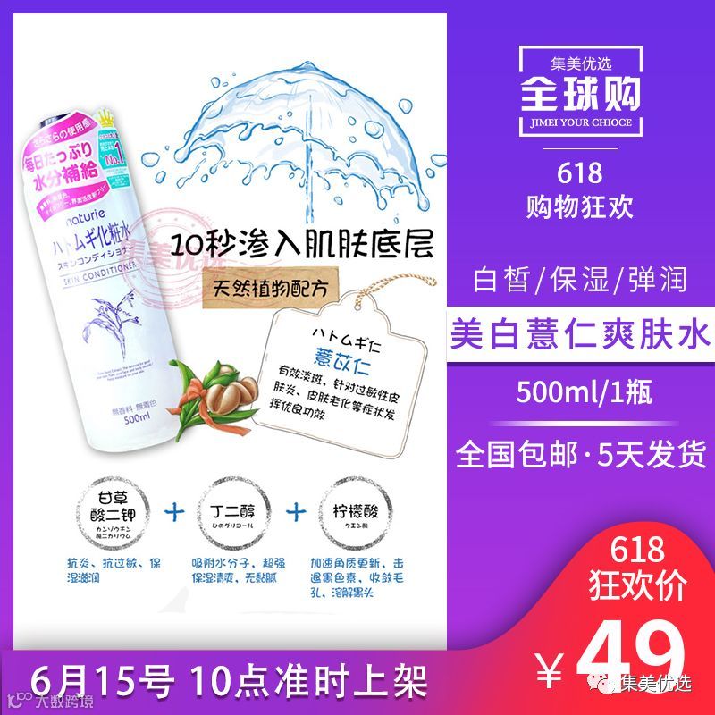 2 日本 naturie美白薏仁爽肤水 化妆水500ml 限量200份!