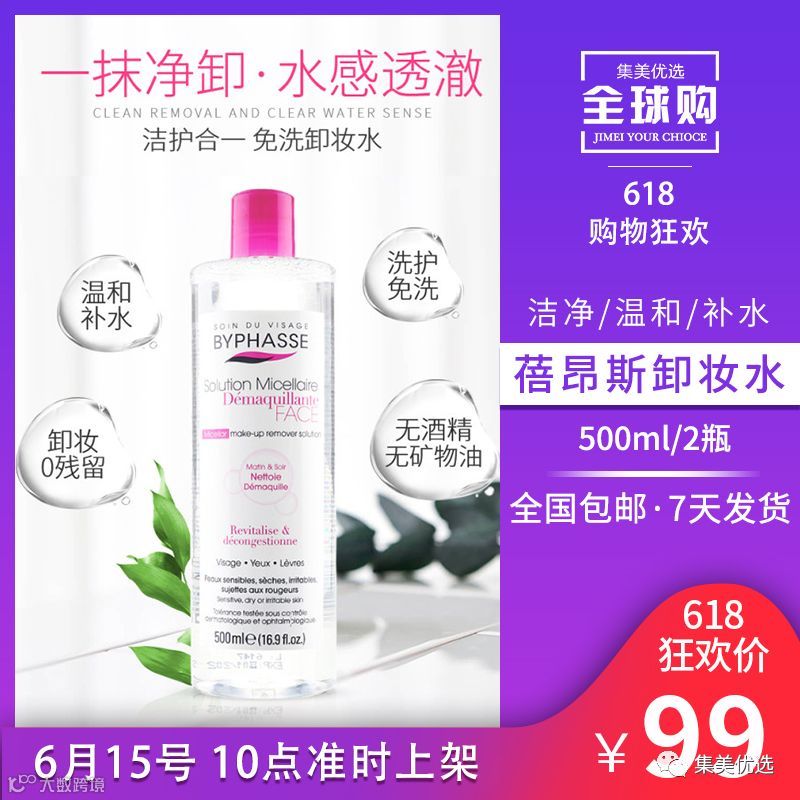 1 西班牙BYPHASSE蓓昂斯深层洁净温和卸妆水500ml 2瓶 限量200份!