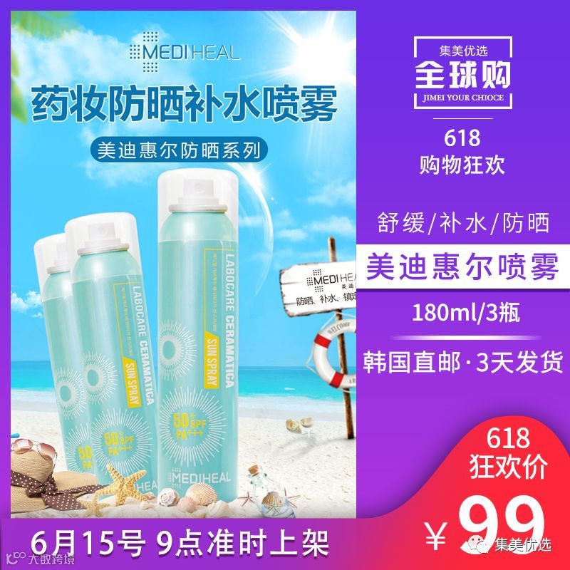 2 美迪惠尔乐肤凯尔舒缓防晒喷雾3瓶 限量300份!